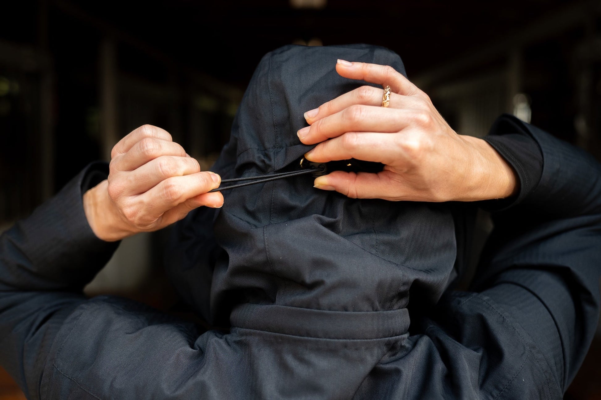 - Oversized zip-off hood fits over a riding helmet with three points of elastic adjustment for a secure fit