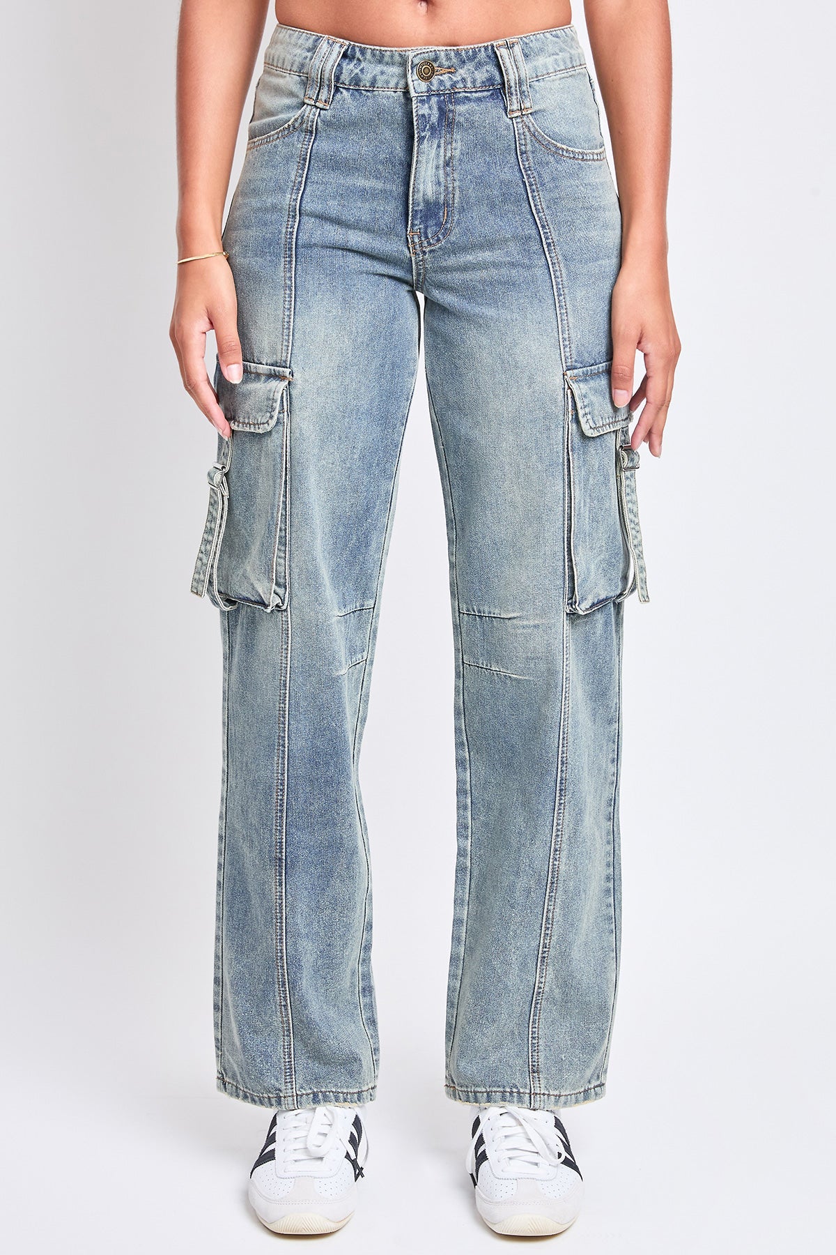 Women's Adjustable Waist Cargo Straight Leg Jeans by YMI Jeans, where practicality meets modern style for the contemporary woman's wardrobe. Crafted with meticulous attention to detail, these jeans redefine casual chic with their functional design and stylish features.