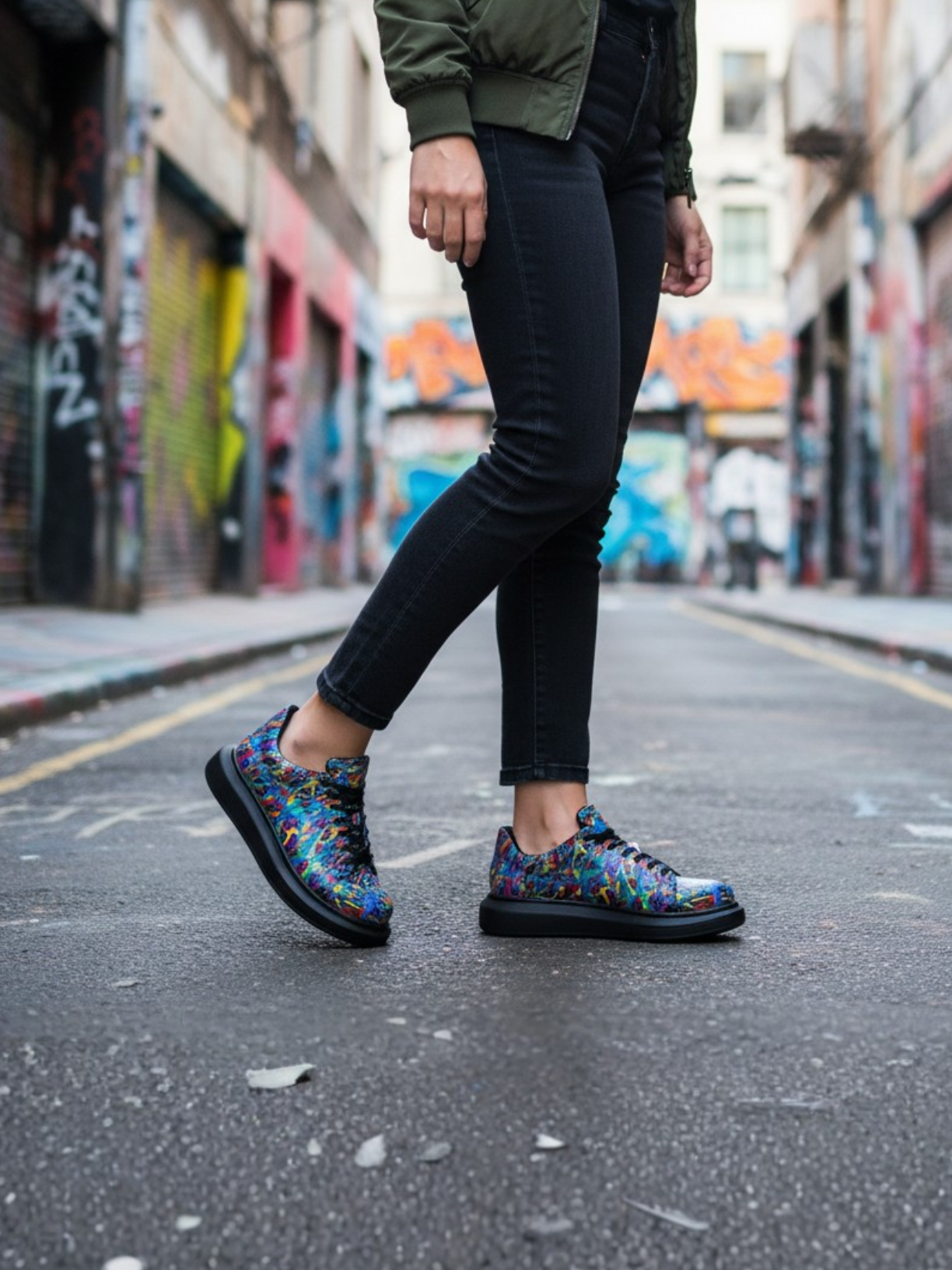 Bold, expressive, and unapologetically creative—Artsy sneakers are made for those who walk like they own the gallery. Each pair features a layered splatter paint design over vegan leather that adds texture and movement to any look. The ultra-lightweight platform sole subtly boosts height and supports all-day comfort. A wearable piece of modern art designed for city explorers and style rebels alike.