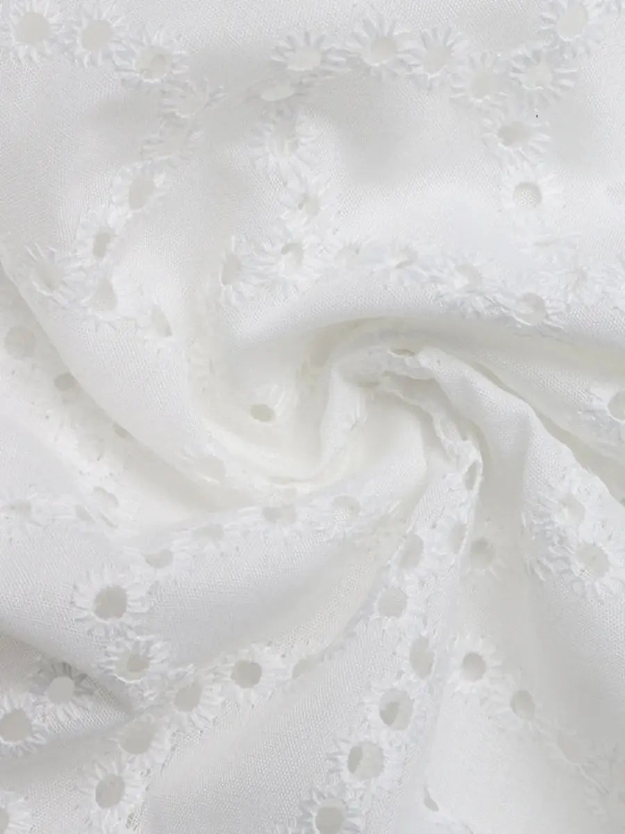 Embrace effortless charm and contemporary style with our Women's Eyelet Off-Shoulder Cutout Blouse. This cute top is designed to make a statement, perfect for sunny days and casual outings. Crafted from a lightweight, breathable cotton blend fabric, it ensures comfort while exuding a chic aesthetic. The intricate eyelet detailing adds a touch of delicate sophistication, creating a beautiful texture that catches the eye.