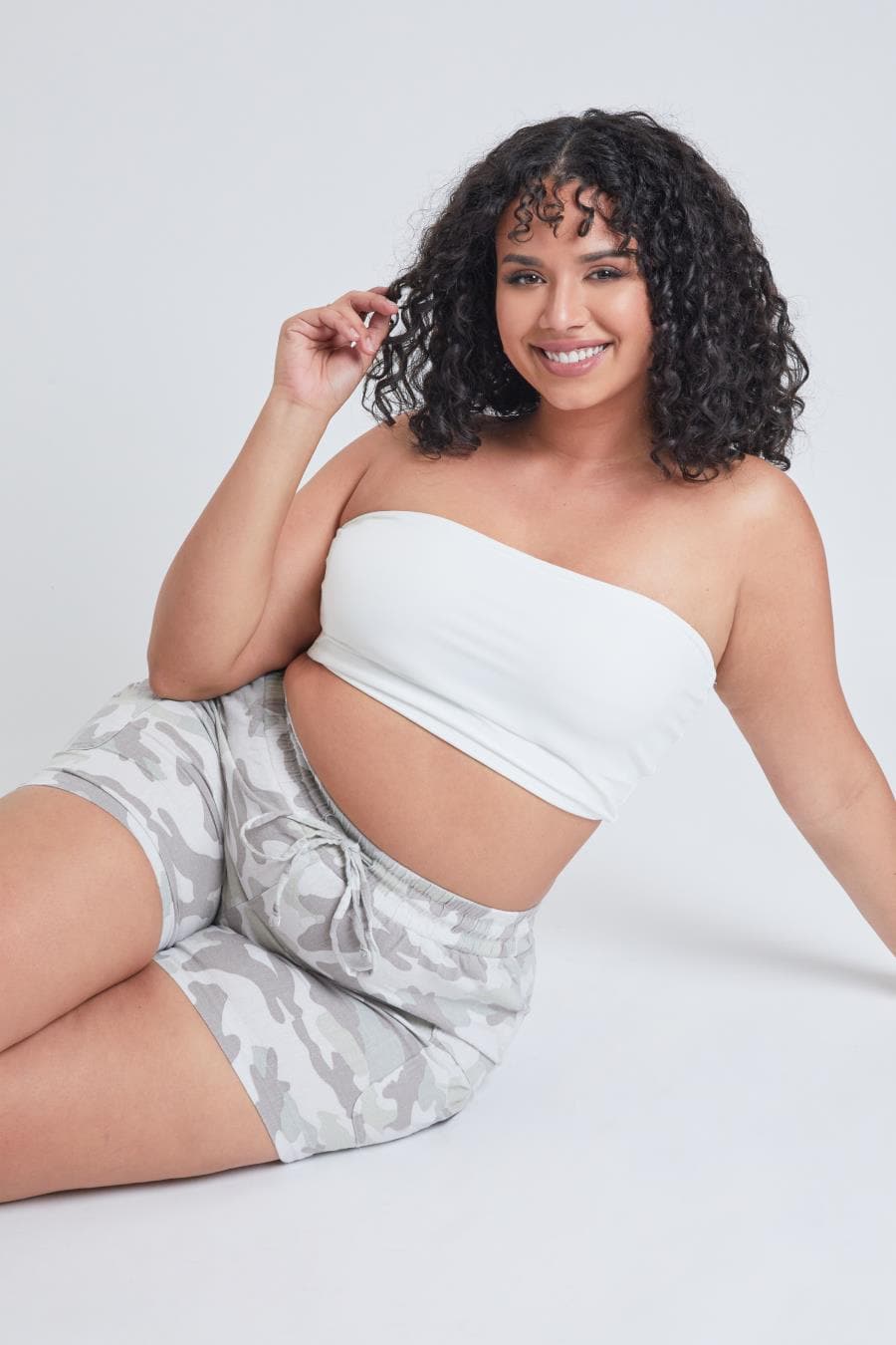 Women's Plus Linen Shorts With Shirred Patch Pockets