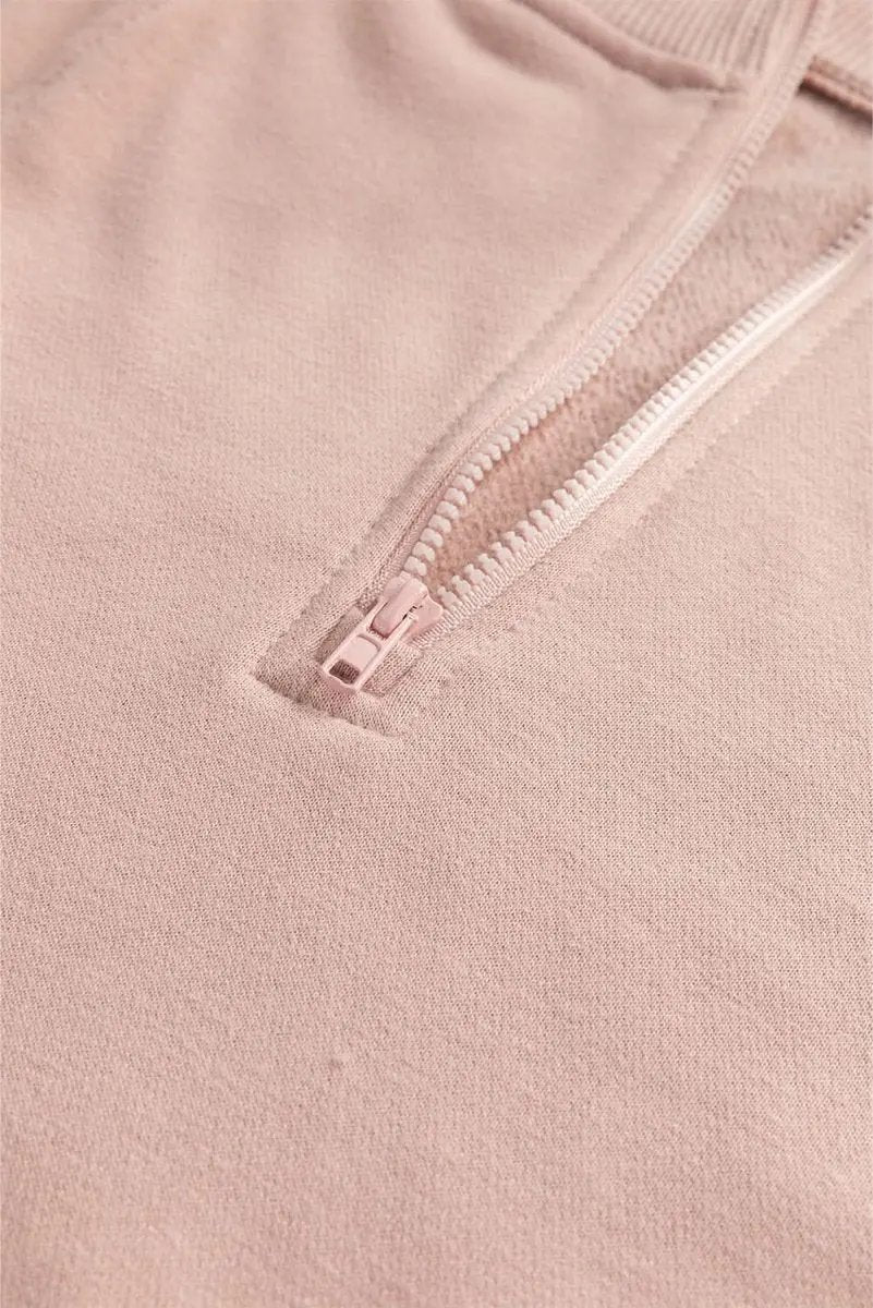 The relaxed fit of this sweatshirt, combined with its stylish drop shoulder design, creates a flattering silhouette that suits all body types. The generous cut allows for easy layering over a t-shirt or tank, while the ribbed cuffs and hem provide a snug yet comfortable finish. A distinctive zipped neck adds a touch of contemporary flair, allowing you to adjust your look and ventilation. Zip it up for a mock-neck style or open it for a more laid-back, V-neck effect.