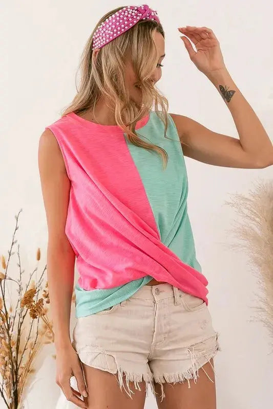 Women's Tank Top - Slub Terry Color Block Twisted - Casual