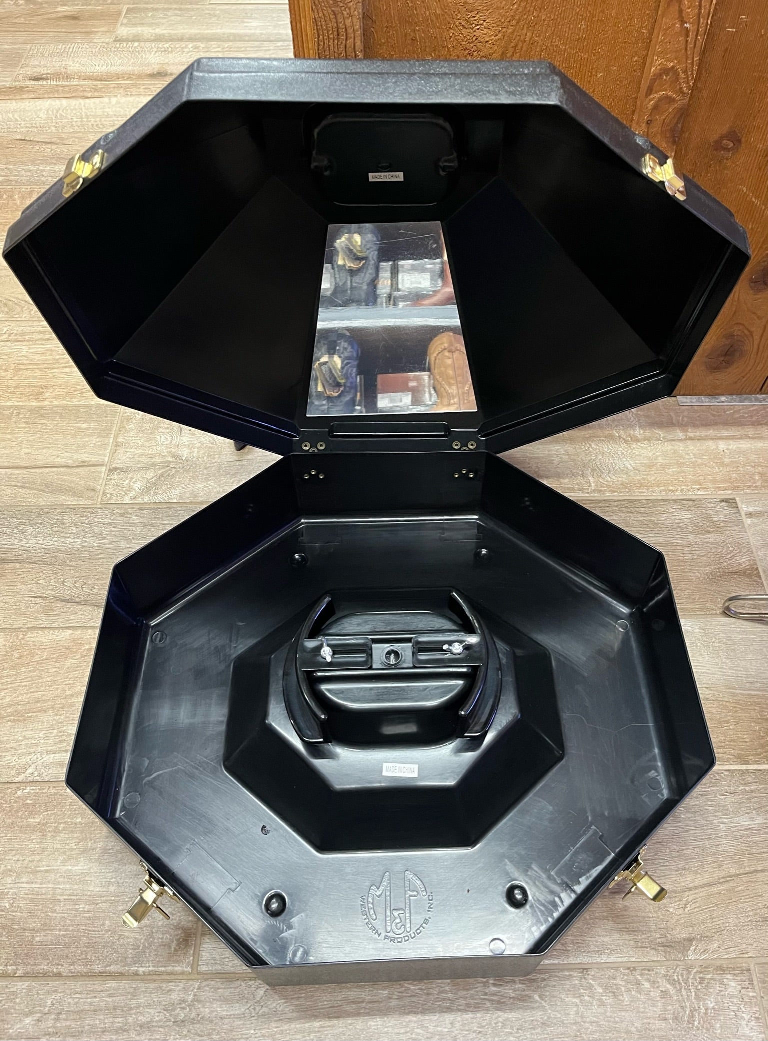 Oversized hat can for 4 1/4" brims and larger. Has adjustable inserts for any size hat sizes and a mirror.