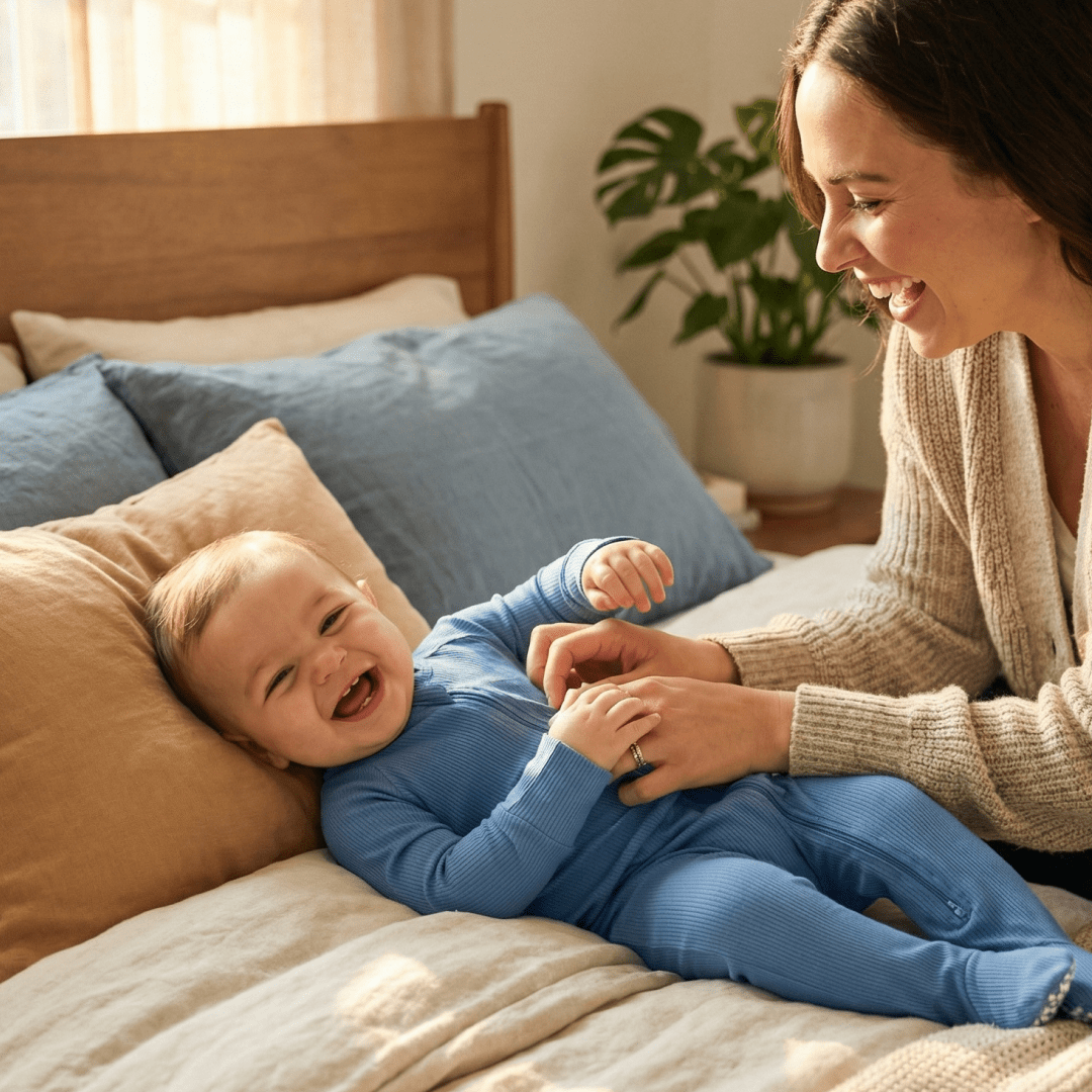 Ask and you shall receive. This yummy footie is equipped with a smooth 2-way zipper, silicone grips on the foot pads and fold-over handcuffs. Plus our silky-soft fabric hugs in all the right places to show off those baby curves.